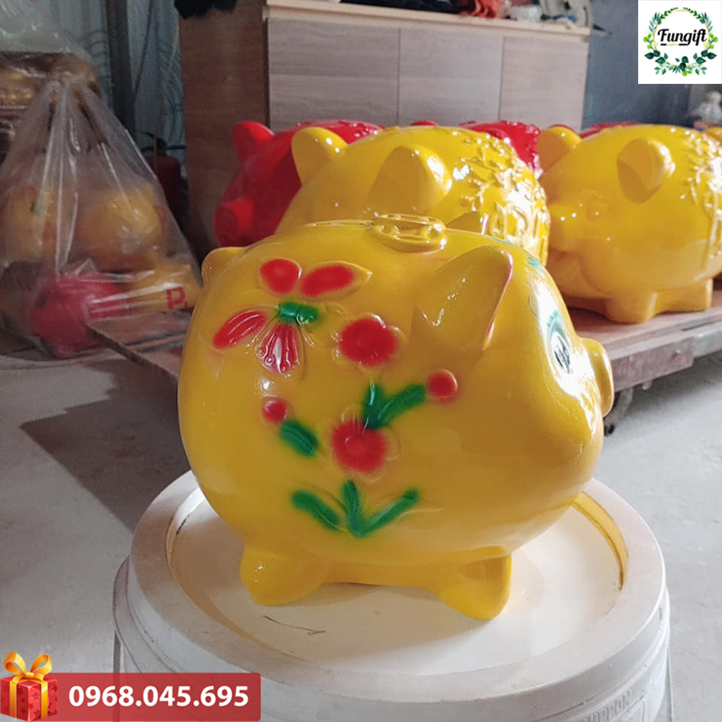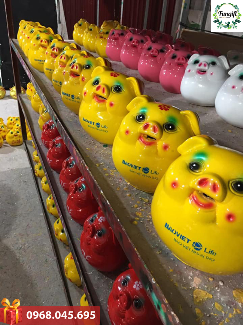 Fungift chuyên sản xuất heo đất được làm từ gốm sứ tùy theo yêu cầu và được sơn phủ bởi loại sơn chuyên dụng giúp sản phẩm bóng đẹp và có nhiều kiểu dáng, kích thước, mẫu mã khác nhau.